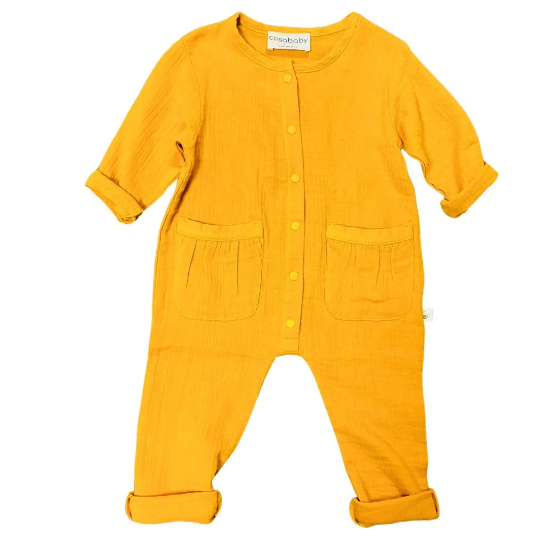 Bright as sunshine and soft as a breeze – this handmade, daisy yellow romper is the perfect year-round essential for your little explorer. Made from soft and breathable GOTS-certified organic muslin cotton, this unisex romper ensures comfort and style from playtime to nap time.