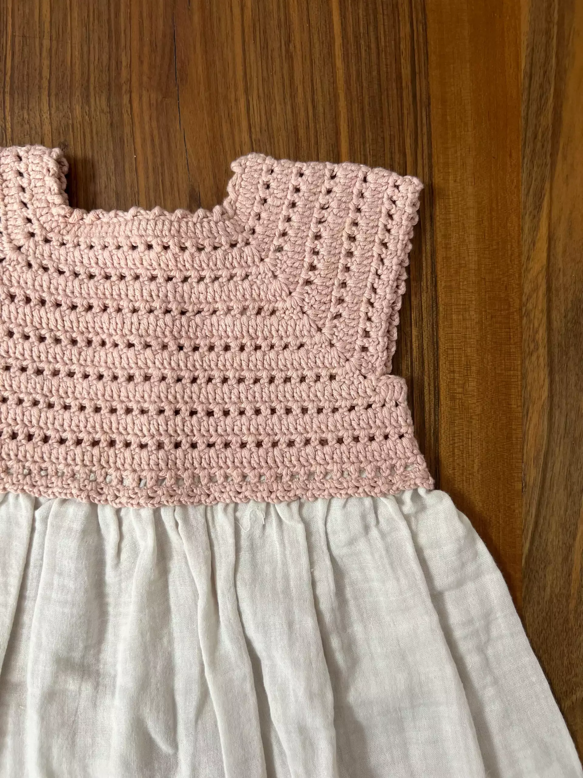 Handmade Crochet-Muslin Top Dress for Girls, Crochet Baby Dress, Organic Cotton Baby Dress, Muslin Toddler Dress, Girls Spring Dress