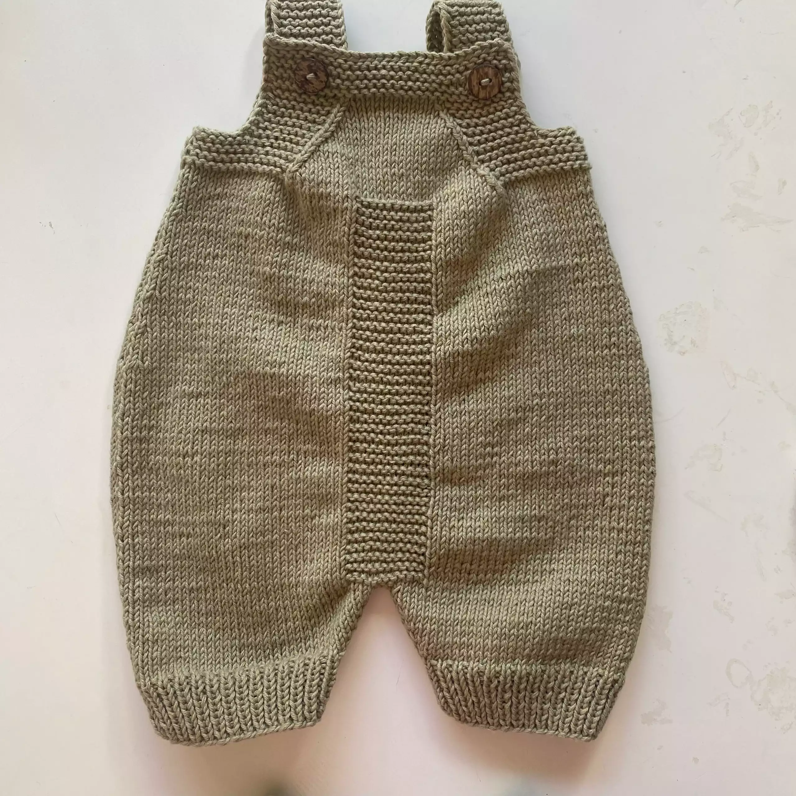 A textured knit romper with buttoned straps