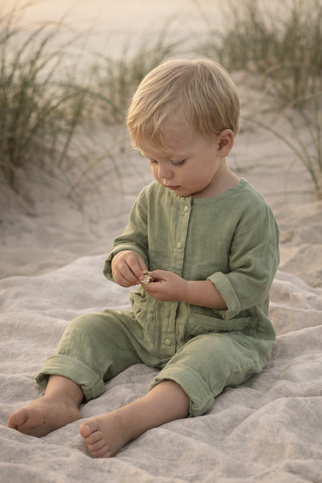 A timeless essential for your little one’s wardrobe – this sage green romper is made from breathable, buttery-soft organic muslin cotton, perfect for all seasons. Thoughtfully designed for maximum comfort, it features long sleeves, nickel-free snaps for easy dressing, and roomy front pockets for that extra dose of cuteness.